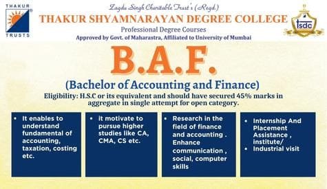 BCom Accounting and Finance is an undergraduate course of 3 years (Full time). Advance your career in accounting and finance with an internally accredited B.Com. degree from Thakur Shayamnarayan Deegre College.